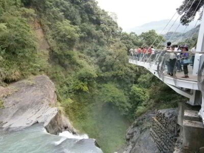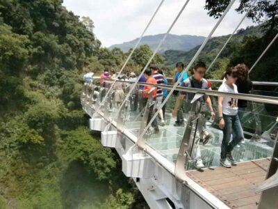 100年經典北橫-彩虹國度之旅【天空步道】天空步道70公尺高的勇氣挑戰,360度的全新視野「小烏來天空步道」位於桃園縣復興鄉,以懸空於小烏來瀑布上方的設計,讓參訪遊客能從距離瀑布底70公尺高的玻璃平台上,欣賞小烏來秀麗溪谷和氣勢磅礡的瀑布景觀。11公尺的廊道,嶄立在風動石旁。只要花50元就能感受「70公尺高的勇氣挑戰360度的全新視野」挑戰你的感官極限!